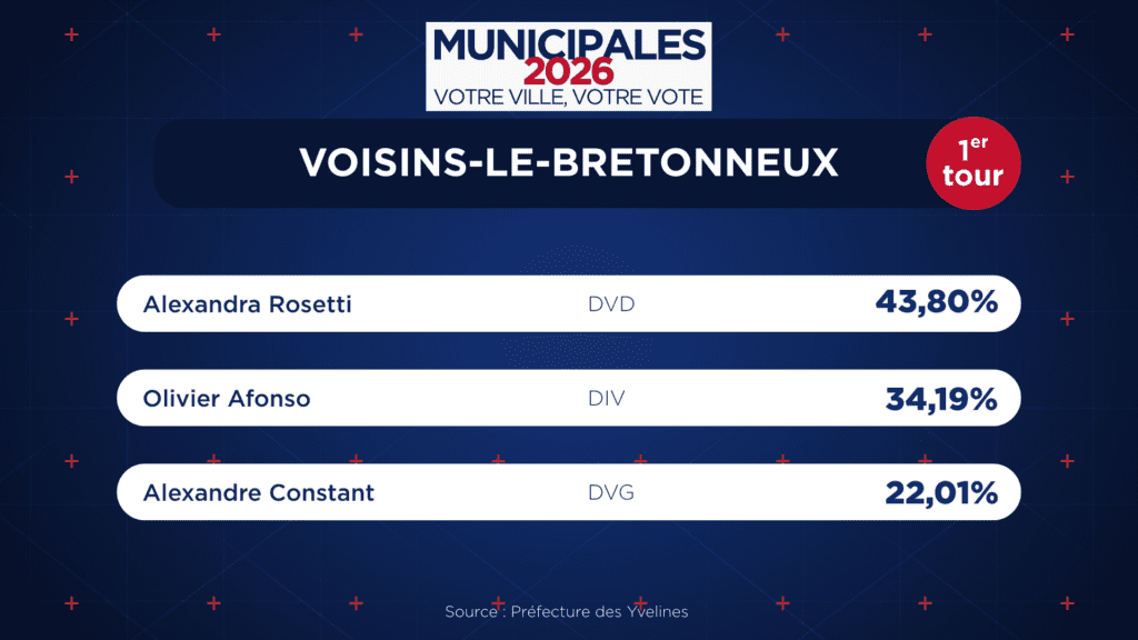 La maire de Voisins-le-Bretonneux est Alexandra Rosetti, élue lors des élections municipales de 2020. Elle est la maire sortante à l’approche du scrutin de 2026.